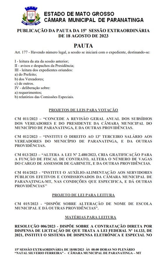 Câmara Municipal Paranatinga - MT