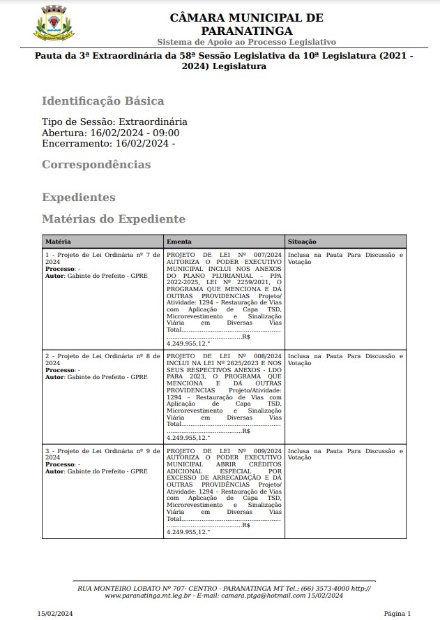 Câmara Municipal Paranatinga - MT